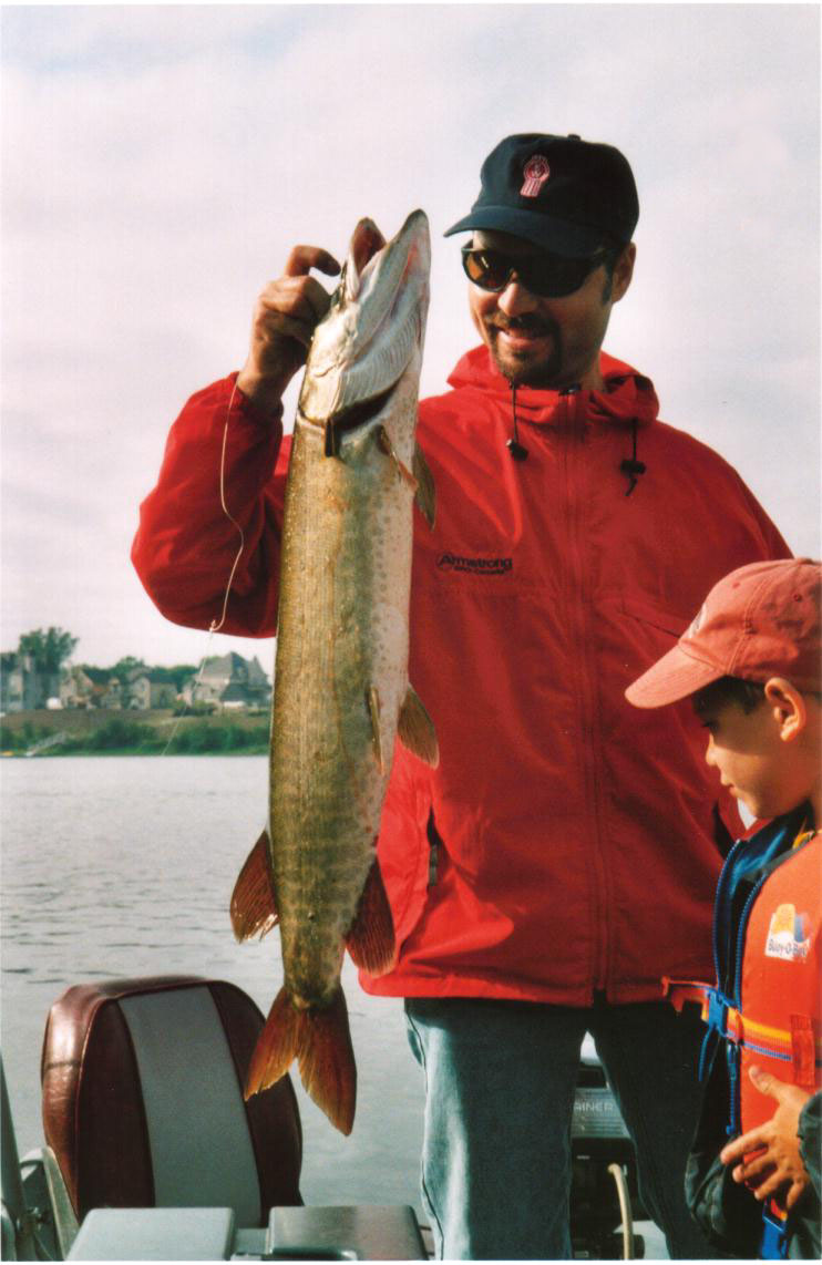 Regarde Olivier, papa a attrapé un beau brochet de 45lbs. Raconte ça à tout tes amis, surtout leur papa!